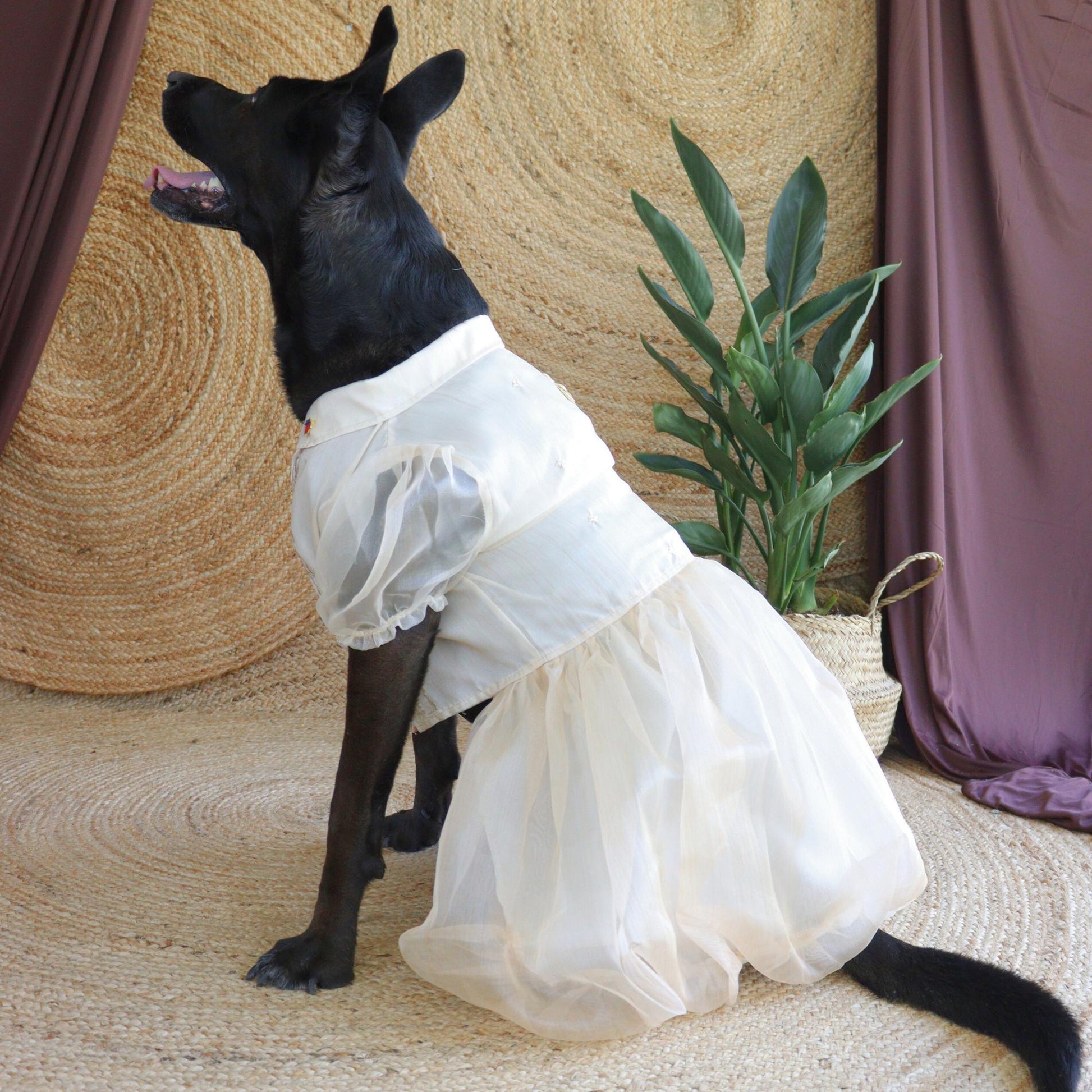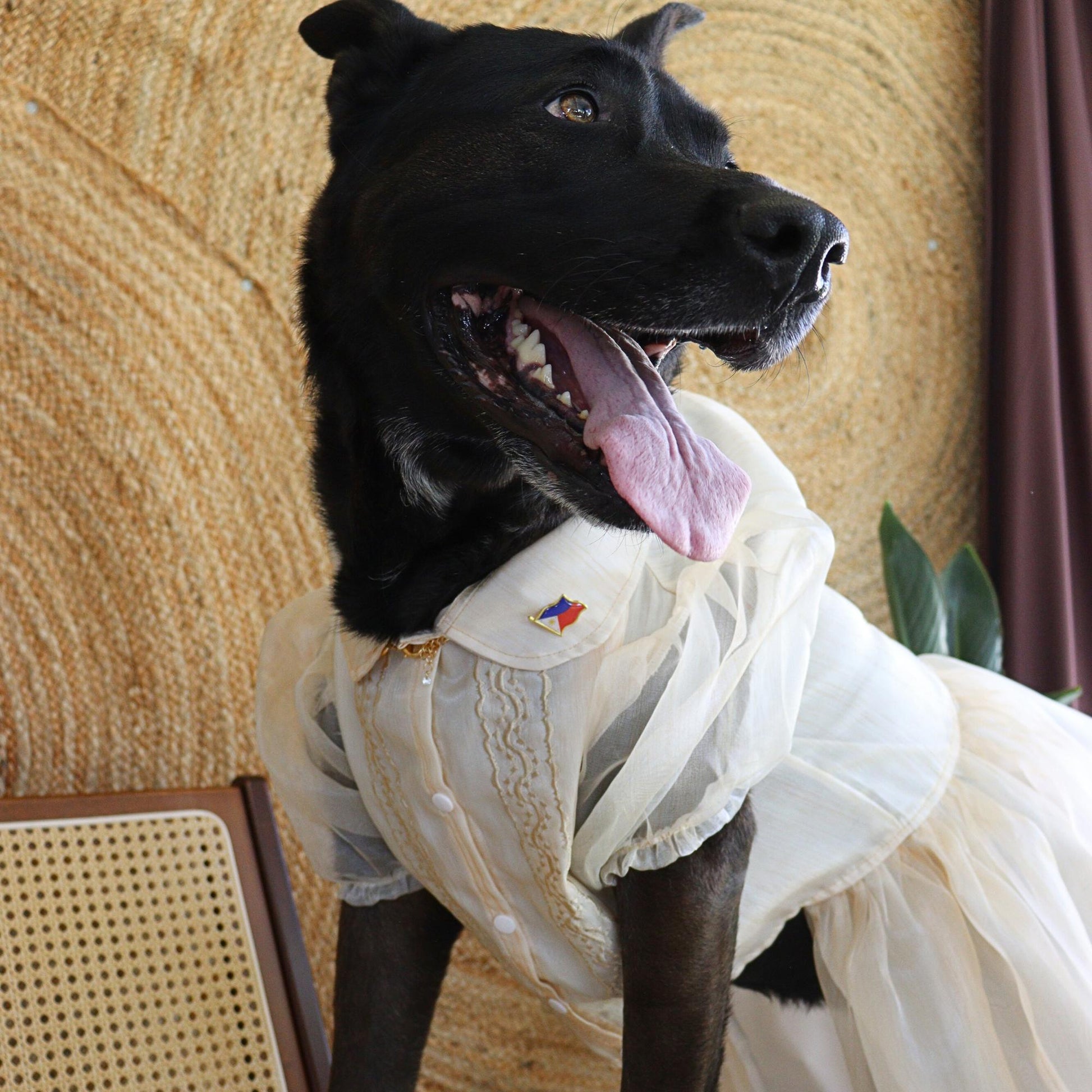 Graceful and timeless, the Cream Dress Dog Barong is designed to capture the elegance of Filipino tradition in a dress-style silhouette. The soft cream fabric provides a classic, refined backdrop for delicate embroidery, while the flowing design and subtle details elevate it beyond the standard barong. Perfect for weddings, baptisms, family portraits, or festive occasions, this dress-style barong highlights your pup’s beauty while celebrating Filipino heritage.