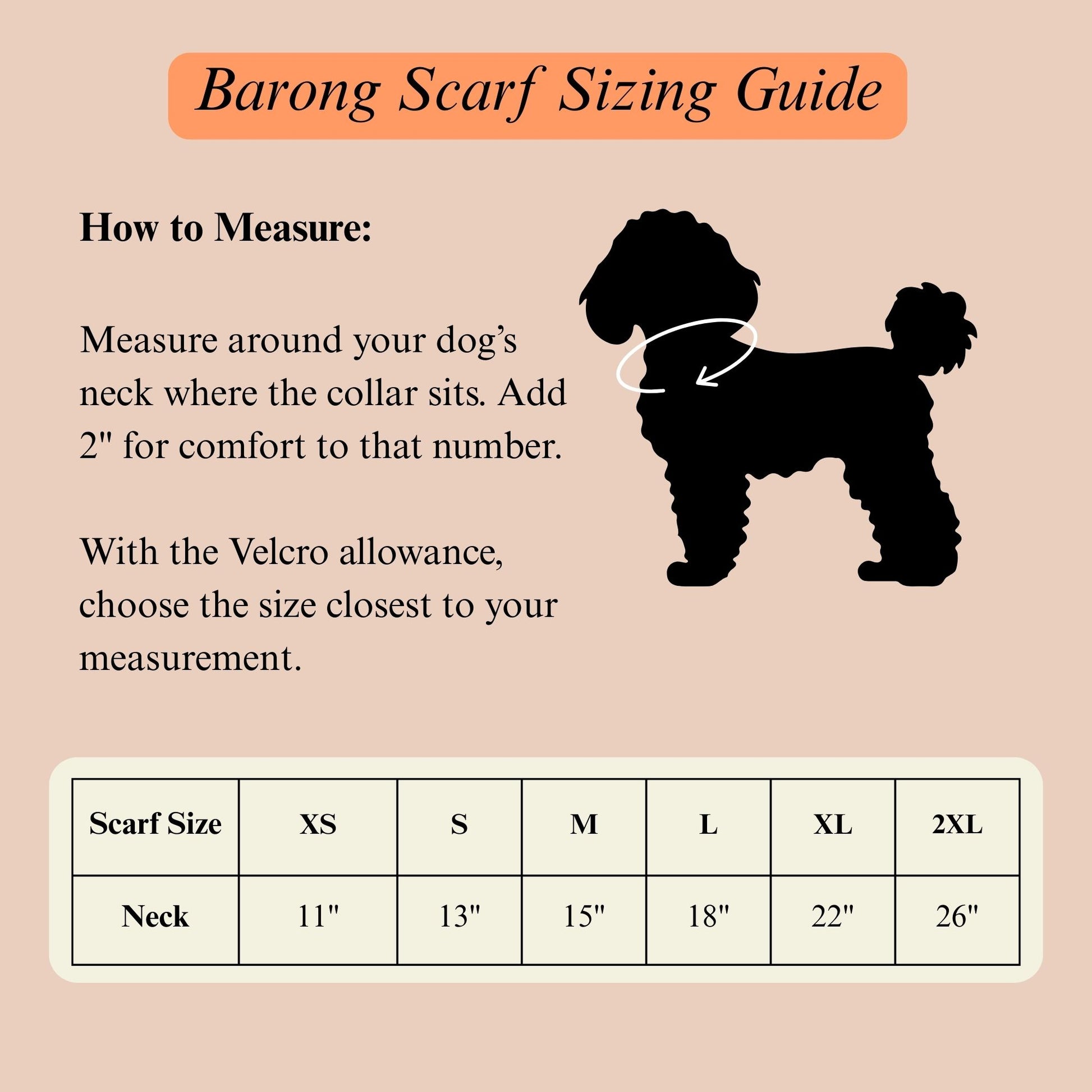 Give your pup a touch of Filipino heritage with the Dog Barong Scarf, a handcrafted accessory inspired by the iconic barong tagalog. Made with premium silk for a smooth, lightweight feel, it’s designed to sit comfortably around your dog’s neck without tugging or irritation. The scarf is lined with soft cotton and secured with durable Velcro, making it easy to put on (even for wiggly dogs).