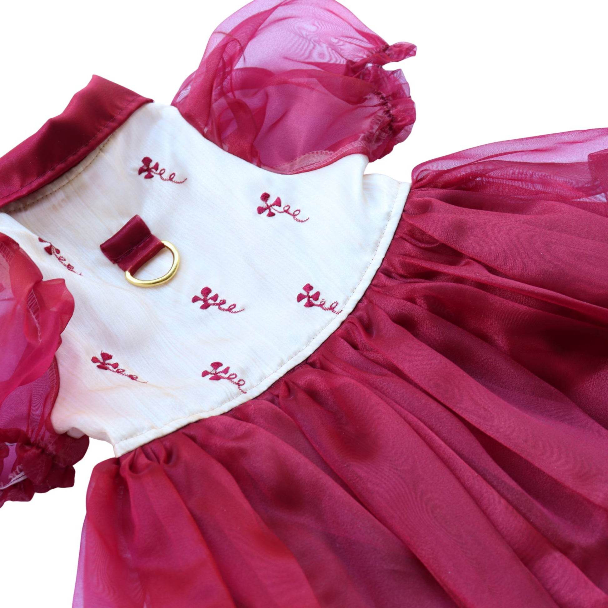 Rich and regal, the Maroon Combination Dress Dog Barong brings bold elegance to Filipino tradition. The cream satin bodice is accented with maroon embroidery, while the deep maroon collar, butterfly sleeves, and flowing skirt create a dramatic contrast. Designed in a gown-style silhouette, this dress barong is perfect for weddings, fiestas, holiday portraits, and cultural celebrations where your pup deserves to stand out in style.