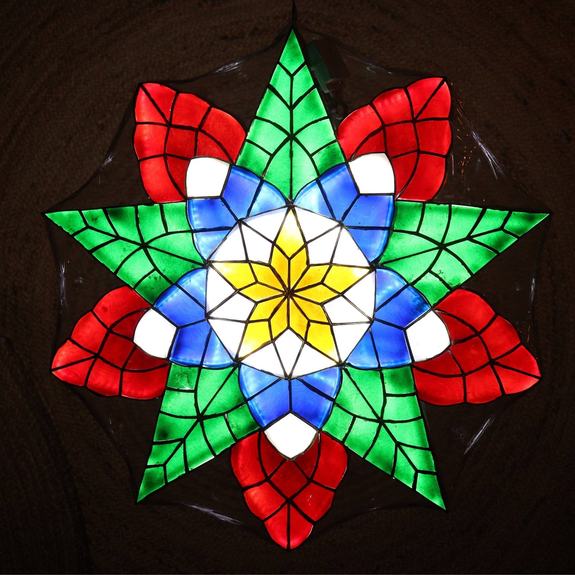 The bold red, blue, yellow, green, and white hues echo the colors of the Philippine flag, symbolizing unity, hope, and festivity. This classic parol design has lit up Filipino towns and homes for generations, making it a meaningful piece of tradition passed down through time. Each lantern is carefully assembled by skilled artisans using genuine Capiz shells and a durable frame, ensuring both beauty and longevity.