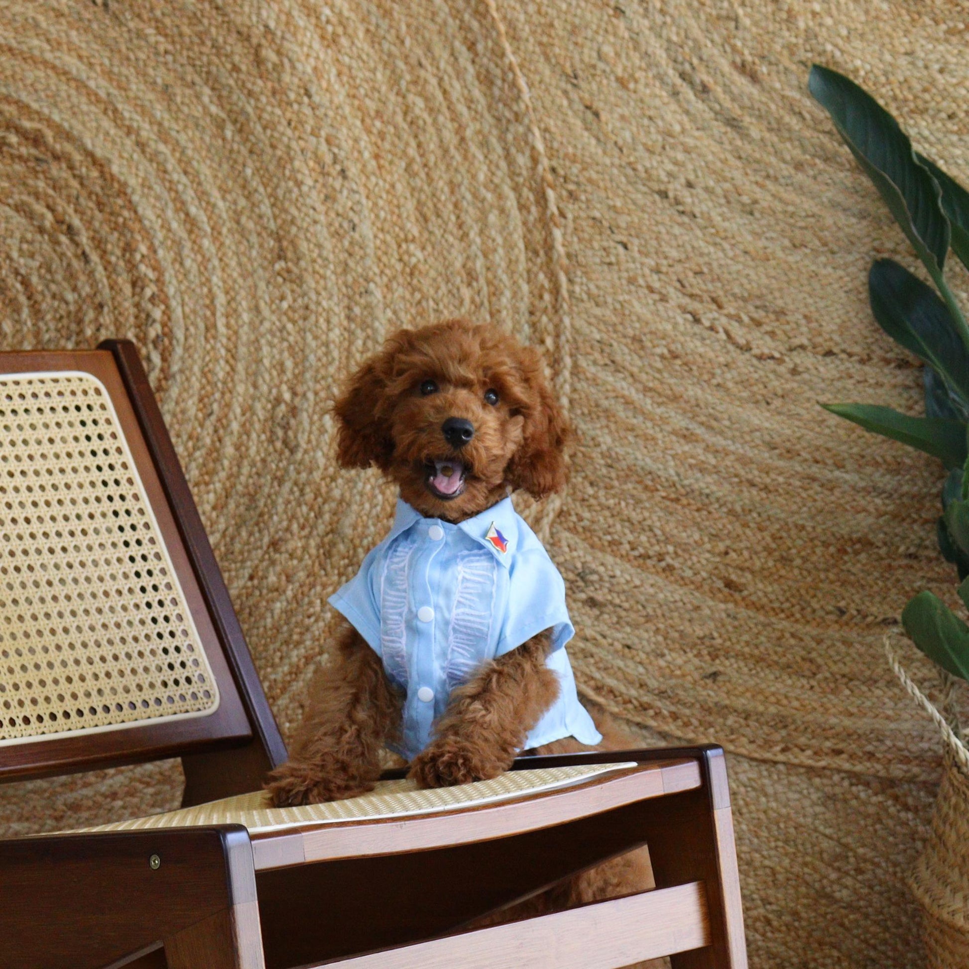 The barong features intricate embroidery across the chest, highlighting Filipino craftsmanship in a striking powder blue shade that stands out while remaining elegant. Perfect for weddings, special events, or as a statement piece that proudly showcases heritage.